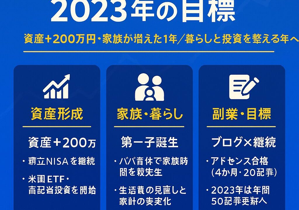 この記事では、2022年の資産推移や投資・家計の振り返りをまとめながら、2023年に向けて立てた投資方針と暮らしの目標を整理します。「家族が増えても、資産形成をあきらめない」そんな現実的なFIRE・サイドFIREを目指す方の参考になれば幸いです。