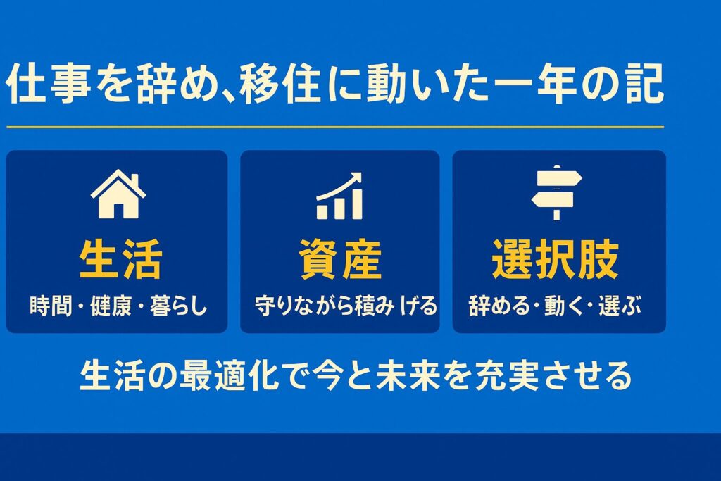 結果、支出が減り、投資に回せる資金も増えるという循環を目指します。つまり移住は、お金のためではなく“生活の質を上げるための決断” でした。